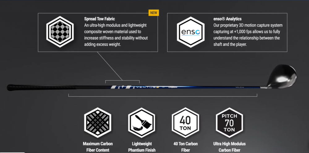 Ongoing enso® analytics show that the shaft undergoes tremendous stress in the mid/handle section during the transition and downswing. By incorporating an incredibly strong and ultra-lightweight Spread Tow carbon fabric, VENTUS TR is able to increase torsional stiffness in this specific section, helping to even further reduce twist and ovalization during the swing.